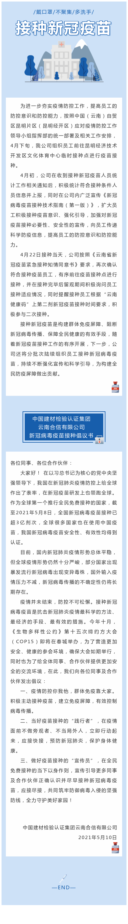 國檢集團(tuán)·云南合信組織員工接種新冠疫苗