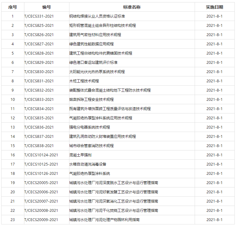 2021年8月開始實施的工程建設標準
