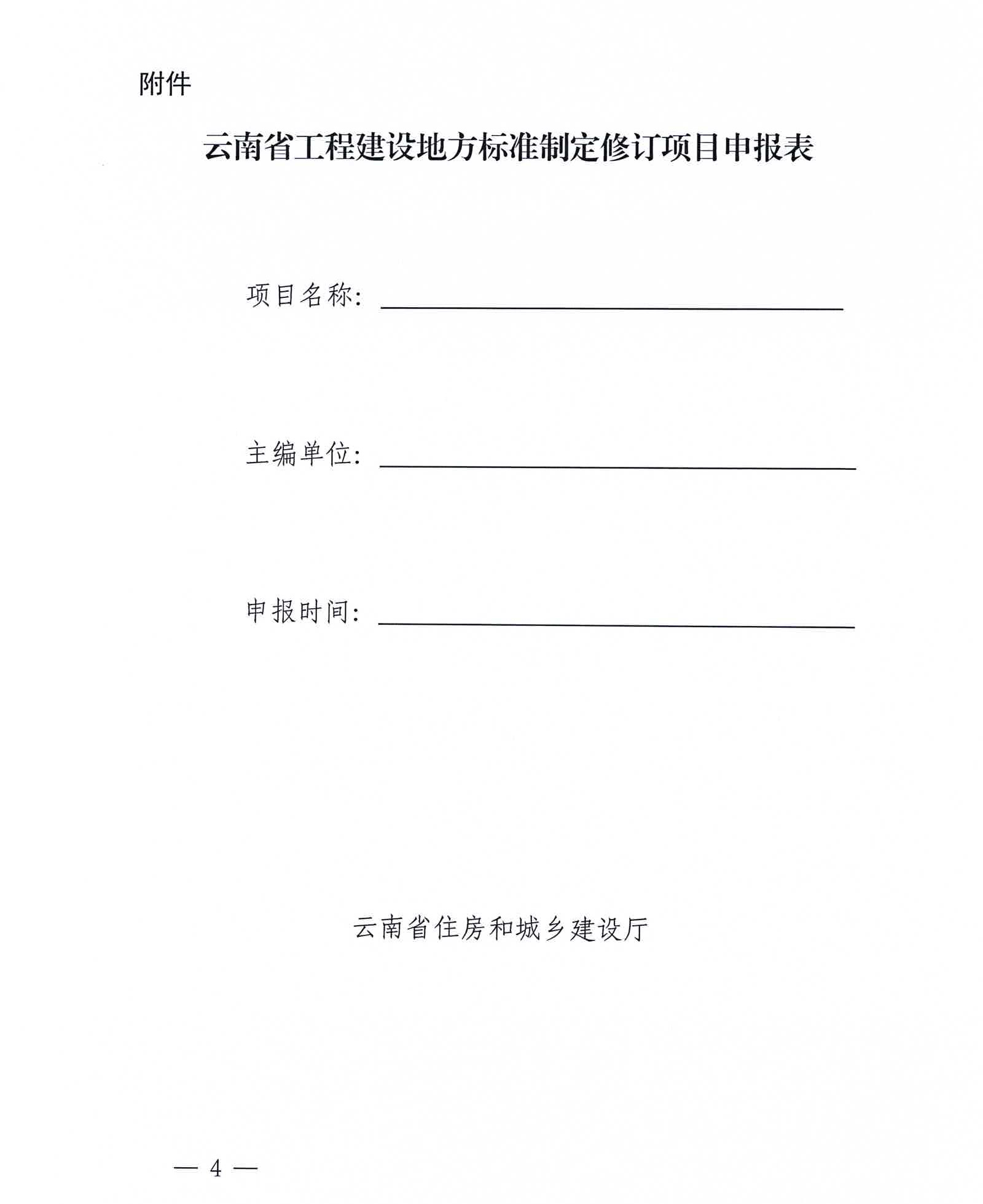 云南省住房和城鄉(xiāng)建設(shè)廳關(guān)于申報(bào)工程建設(shè)地方標(biāo)準(zhǔn)編制項(xiàng)目的通知