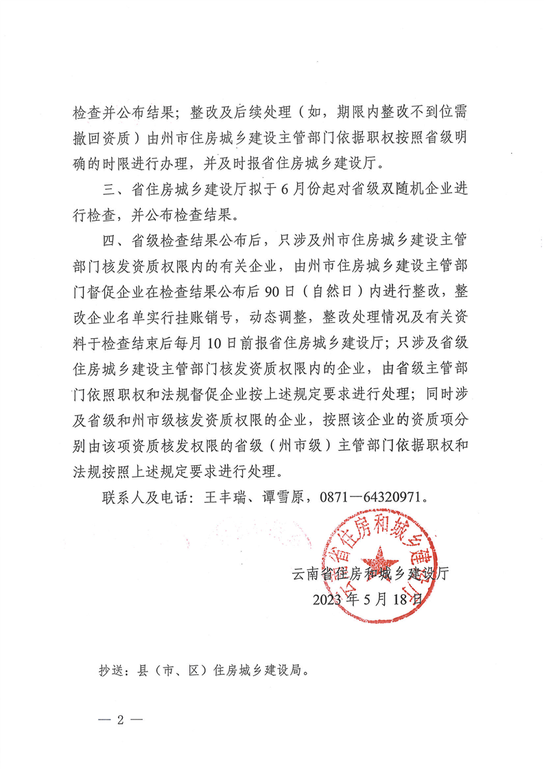 云南省住房和城鄉(xiāng)建設廳關于進一步做好2023年度建筑市場監(jiān)管領域“雙隨機、一公開”檢查的補充通知