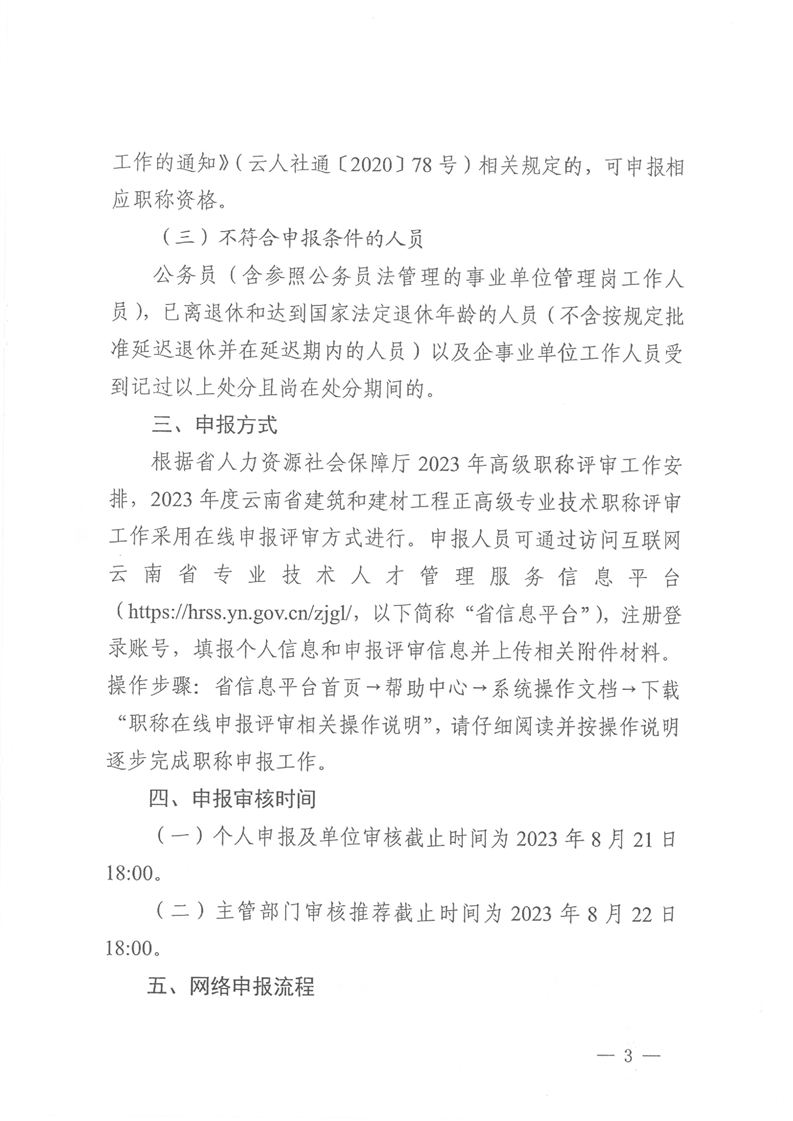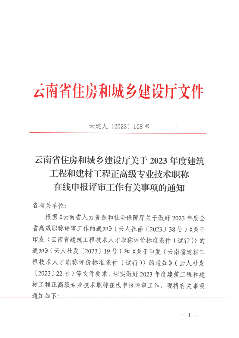 云南省住房和城鄉(xiāng)建設(shè)廳關(guān)于2023年度建筑工程和建材工程正高級(jí)專業(yè)技術(shù)職稱在線申報(bào)有關(guān)事項(xiàng)的通知
